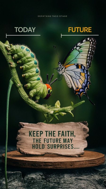 - The central message is "KEEP THE FAITH, THE FUTURE MAY HOLD SURPRISES....."