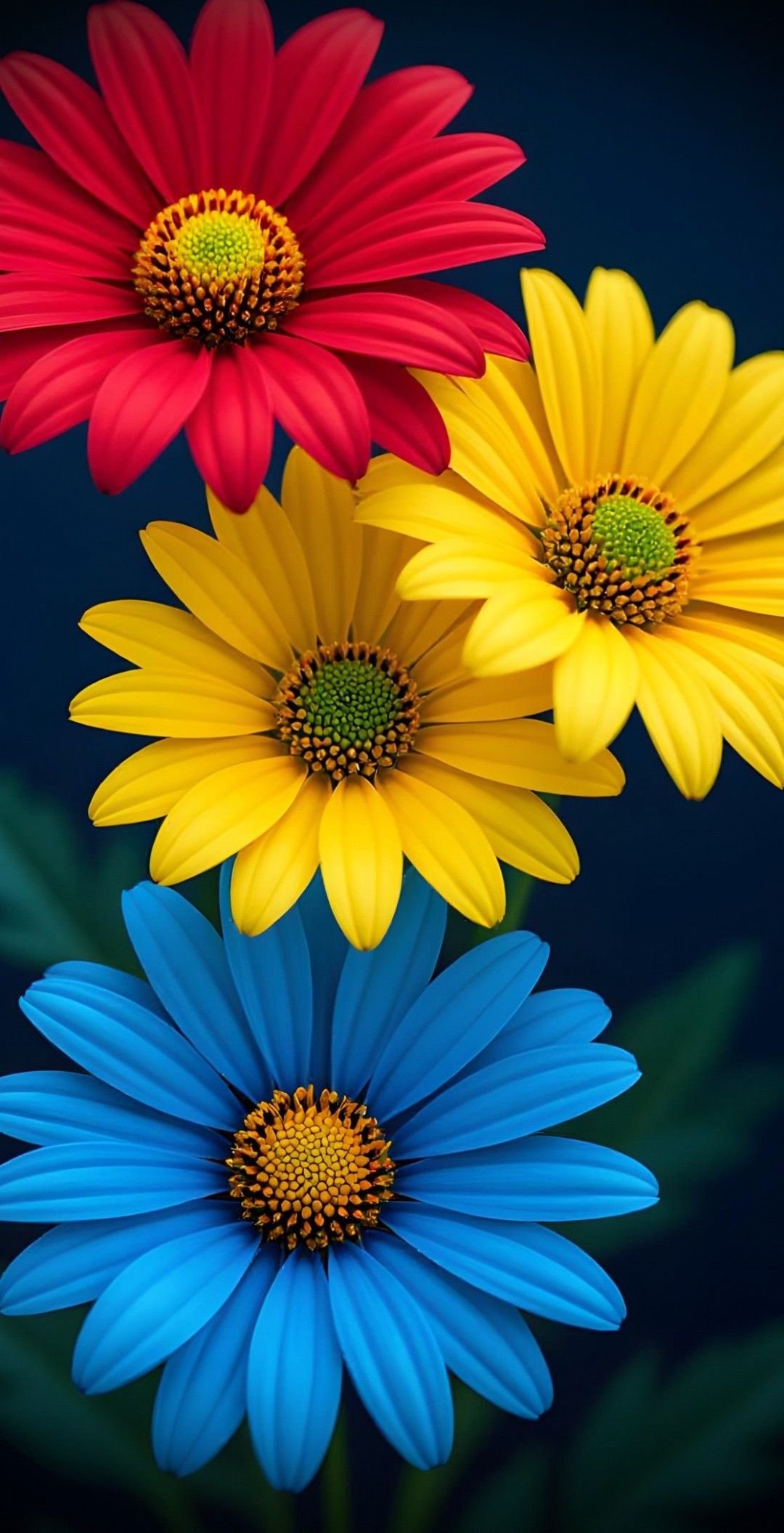 The image displays several brightly colored flowers that appear to be a type of daisy, likely an African daisy or a related species.